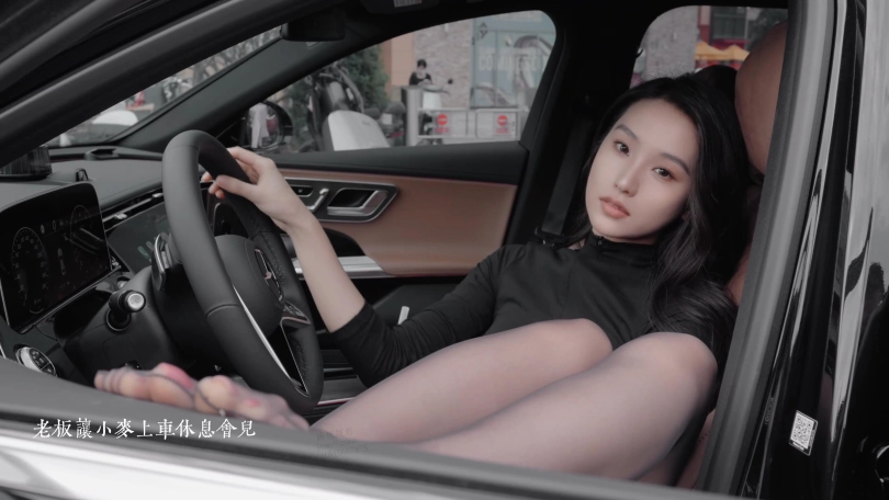 老板让小麦在车里休息,看着她的黑丝美腿,心痒痒的。
