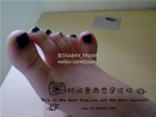 › 【Student Model】萌妹AA黑色甲油人字拖裸足,甲油控的福音