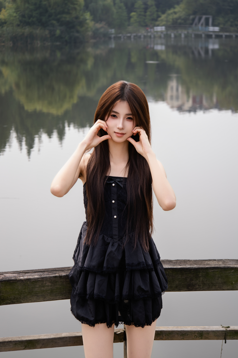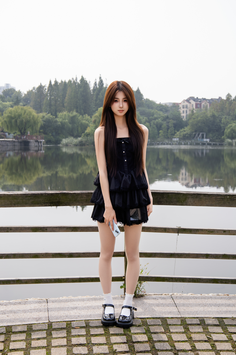 足愉心摄影第75期:模特小瑶(搭配:黑色连衣裙、肉色丝袜、白色棉袜、玛丽珍小皮鞋)