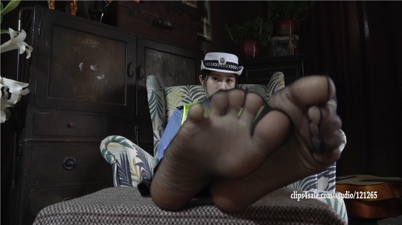 › 【K&M】呆萌交警可爱自拍超薄透黑丝高跟挑鞋秀脚