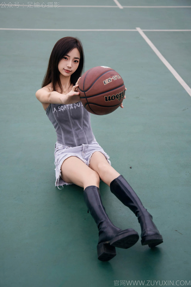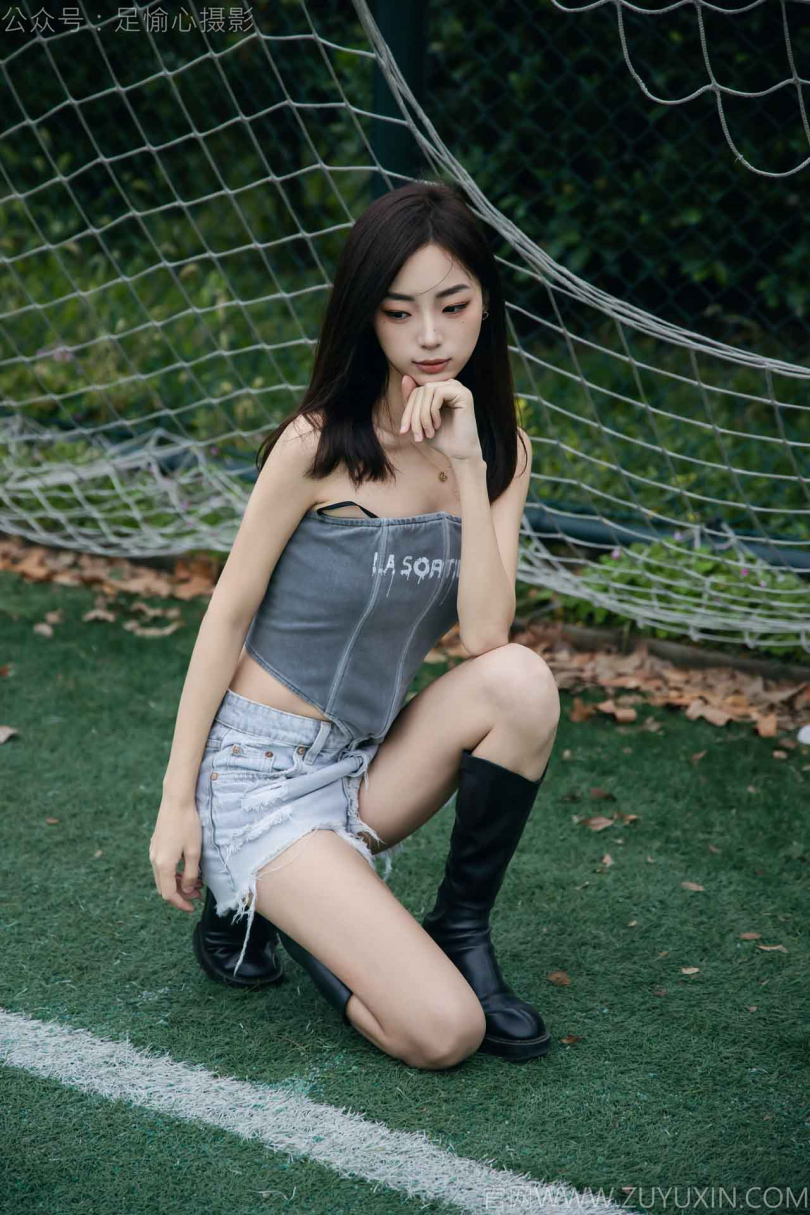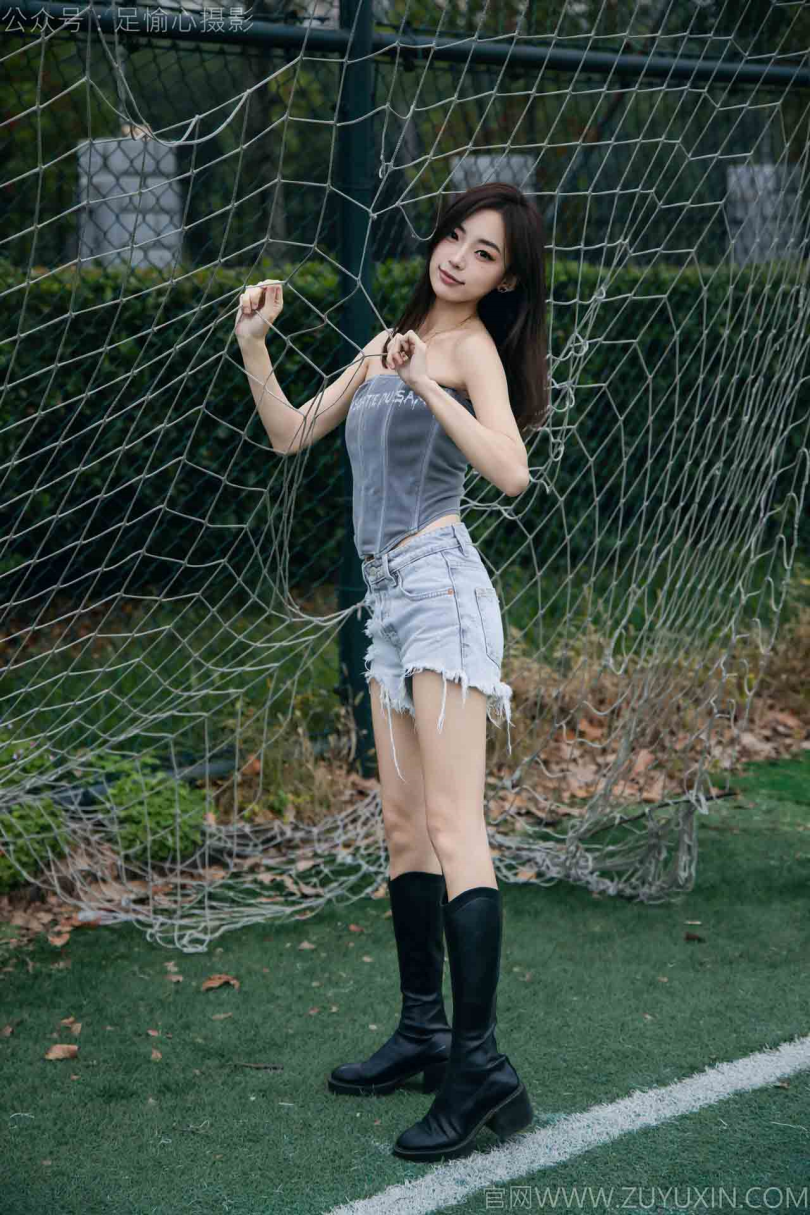 足愉心摄影第8期:模特布丁(搭配:抹胸、牛仔短裤、长筒皮靴、白色棉袜、裸足)