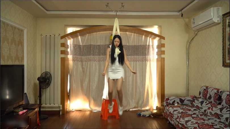 【女神上官逸霖(亚楠)】接到男友分手电话,失恋后决定上吊自杀,画好美妆+换上丝袜,自缢失禁而死